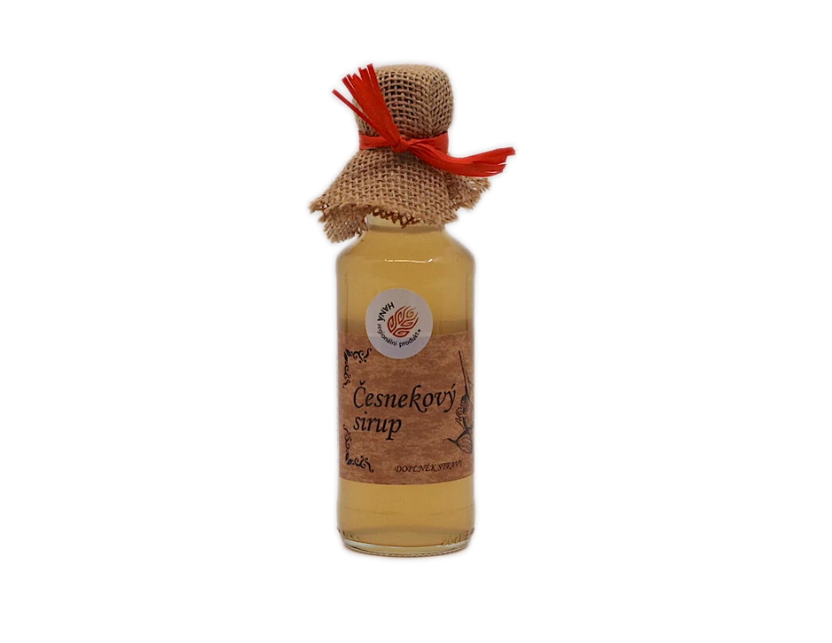 Česnekový sirup vyrobený podle staré osvědčené receptury, bez přidání barviv a chemických konzervačních látek. Je vyráběn za studena, nedochází proto ke ztrátě všech prospěšných látek. Česnek je označován jako přírodní antibiotikum, vzhledem k jeho antibakteriálním a protizánětlivým účinkům. Ve spojení s jablečným octem má česnek velikou řadu velice příznivých účinků na lidský organizmus.