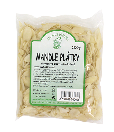 Mandle plátky 100 gSkladem53 Kč/ ks47 Kč bez DPH