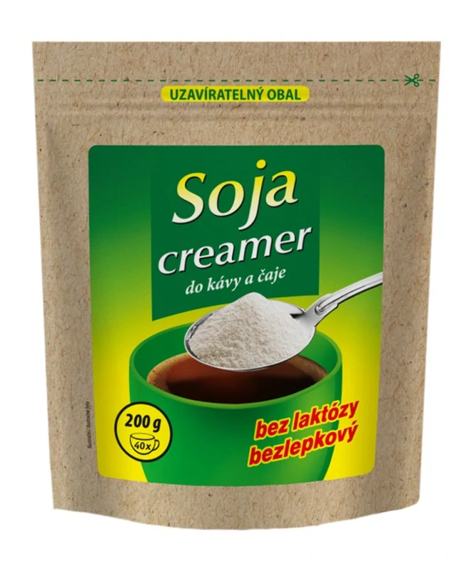 Sušený sójový krém je výbornou, chutnou alternativou kravského mléka, bez lepku a laktózy. Postačí 2 kávové lžičky tohoto krému a skvěle zpříjemníte chuť svého oblíbeného nápoje, ať už je to káva nebo čaj. Soja creamer chuť vašeho nápoje zjemní a osvěží. Dávku, v případě potřeby, samozřejmě snadno doplníte.
