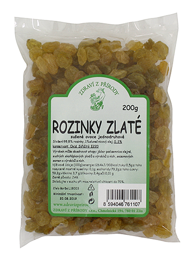 Sušené rozinky zlaté 200 gSkladem66 Kč/ ks59 Kč bez DPH